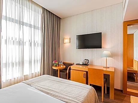 The 4-star Mercure Lisboa Almada is located just a short drive from Costa da Caparica's beaches and 0.9 mi from the iconic Cristo Rei Statue. It offers modern rooms with a picturesque view of Almada. The tastefully-decorated rooms at the Mercure Lisboa Almada have an LCD TV with cable channels, a work desk and air conditioning. Free WiFi is provided throughout the hotel. Free indoor parking is available for the hotel's guests. The hotel was inagurated in 2010 ans was the 1st 4-star hotel in Almada. The hotel offers a restaurant serving international dishes inspired in the Portuguese gastronomy, and a new lounge concept with a variety of freshly prepared juices, teas and flavored waters, as well as refreshing mocktails and other non alcoholic drinks. Lisbon's popular historic center is 5.6 mi away, featuring iconic areas like Chiado, Rossio and Bairro Alto. The hotel is 2.3 mi from the Forum Almada shopping center. Mercure Lisboa Almada is only a few steps from Almada's center. It is also near the A2 highway and the ferry, railroad and light rail stations. Lisbon International Airport is 11 mi from the Mercure Lisboa Almada.