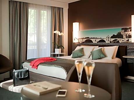 Featuring free WiFi throughout the property, Mercure Pont d’Avignon Center is located in the historic center of Avignon, just 328 feet from the Pont d'Avignon and 492 feet from Papal Palace. Guests can enjoy the on-site bar with the outdoor shaded terrace. The restaurant offers Mediterranean cuisine with local and seasonal products. Breakfast is served each morning in a designated breakfast room under a glass roof. Every room comes with air conditioning, a safe, a desk and a flat-screen TV. The private bathroom comes with a bath or shower. There is a 24-hour front desk at the property and meeting rooms that can accommodate up to 150 people. The hotel also has a fitness room available 24/7. Caumont Airport is 5.6 mi from Mercure Pont d’Avignon. Avignon Chateaublanc golf course is 6.2 mi away. Avignon Central Train Station is 0.9 mi from the hotel. The hotel has direct access to a covered public car park, accessible for an additional charge. Guests can benefit from a 20% reduction on the car park upon presentation of the ticket at reception.