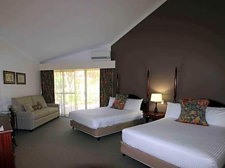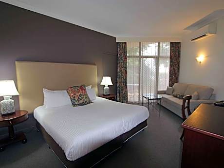 The Mercure Hunter Valley Gardens offers an array of accommodations options in the heart of the Hunter Valley Wine Region. It features 72 beautifully appointed rooms, each with private balcony or terrace. Guests can enjoy a swimming pool, a fitness center, and an on-site restaurant. Mercure Hunter Valley is centrally located within 15 minutes' walk of 5 local wineries, restaurants, shops, concert venues, and the picturesque Hunter Valley Gardens. It is 45 minutes' drive from Newcastle and 2 hours' drive from Sydney. All rooms are air-conditioned and offer a flat-screen TV with cable channels. They feature a refrigerator and tea and coffee making facilities. The private bathrooms include a hairdryer, shower, and free toiletries. The property offers a range of conference and event facilities. Guests can enjoy a game of pool in the library which features board games, a record player, and an extensive range of books. Elements Restaurant and Bar offers French-inspired cuisine made with local produce and seasonal ingredients. The property offers discounted entry tickets to the Hunter Valley Gardens, which are available to purchase at reception.