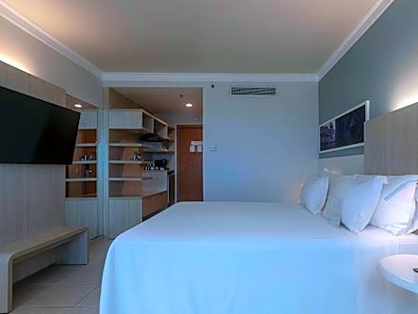 The 4-star Mercure Salvador Rio Vermelho Hotel offers a welcoming environment on the seafront of Rio Vermelho Beach, 9.3 miles from the old center of Salvador. As a guest at the Mercure Salvador Rio Vermelho, you can spend restful nights and enjoy great sea views in brightly furnished rooms. On the ground floor, a pool area with plenty of loungers and a poolside bar provide the ideal relaxation ambiance for your holidays. The hotel also offers a restaurant, another bar, business center, gym and parking lots. The nearest airport is Luis Eduardo Magalhães Airport, 12 mi from the property.