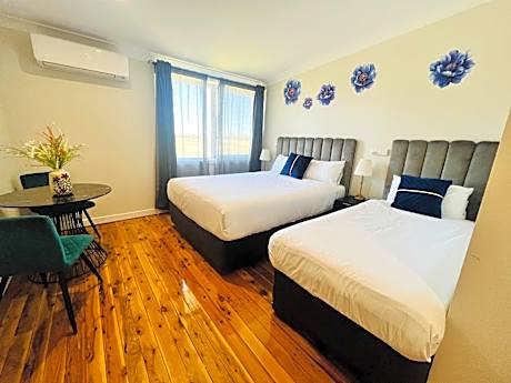 Seven Inn offers newly renovated suites each featuring Reverse cycle Air Conditioning, 40” Smart TV and tea/coffee making facilities. All include an private bathroom with a shower, hairdryer, and free toiletries. High Speed Wifi and free on-site parking for motorcycles, large commercial vehicles like coaches, trailers and trucks. Wagga Wagga City, Airport and the RAAF base are all within 5minutes drive. Wagga Wagga Guns club/ Wagga Wagga Pistol Club is a 2 minute drive and Wagga & District Kart Racing Club is a 1 Minute Drive. Our rooms also offer a Work desk, an open wardrobe, Blackout curtains, fridge and Microwave are standard in all rooms. Salt water swimming pool, barbecue facilities and plenty of outdoor sitting areas. The Charles Sturt University Campus and Kapooka Army training Base are both 15 minutes drive. Wagga Wagga rural referral hospital is an 8 minute drive. The beautiful Wagga Wagga Botanic Gardens and lake Albert is also an 8 minute drive.