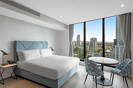 Great care is taken to ensure guests experience comfort through top-notch services and amenities.Remain linked during your visit by utilizing the complimentary internet access available. Experience the wonders of Gold Coast with ease by utilizing the services provided at taxi.Parking is accessible, supplied by the serviced apartment for guests who arrive by car.Effortlessly plan your daily activities and travel requirements with luggage storage and safety deposit boxes provided by the front desk services. Repeatedly enjoy your best-loved attire with the aid of the dry cleaning service available at Meriton Suites Surfers Paradise. The serviced apartment is completely smoke-free. In limited designated zones, smoking is exclusively permitted. Crafted for coziness, every guestroom provides an array of features, guaranteeing a tranquil night's sleep while maintaining the level of comfort. For a more enjoyable stay, select rooms at serviced apartment are equipped with linen service, blackout curtains and air conditioning. At Meriton Suites Surfers Paradise, guests can choose from a variety of room configurations, some of which feature separate living room and balcony or terrace.Expand your in-room entertainment choices with various amenities, such as television offered in certain accommodations. Rest assured that your hydration needs will be met, as some guestrooms are equipped with a refrigerator, a coffee or tea maker, instant coffee and instant tea. Maintain your cleanliness and comfort using a hair dryer and toiletries available in select guest restrooms. Snack vending machines operate around the clock, providing you with easy access to treats regardless of the hour. Indulge in the numerous pursuits available at Meriton Suites Surfers Paradise. During your stay, the serviced apartment provides direct access to a beach, ensuring you remain near the sea throughout your visit.Treat and spoil yourself by stopping at hot tub, spa and sauna for a memorable experience. Begin your holiday perfectly by taking a plunge into the swimming pool.Eliminate those holiday calories by stopping by serviced apartment and making use of their well-equipped exercise amenities.