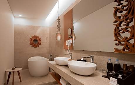 At MERUSAKA Nusa Dua, exceptional service and top-notch amenities create a memorable experience for guests.Complimentary internet access is available in the resort to ensure you stay connected during your visit.Arrange your trips to and from the airport using the resort's convenient transportation services booking.Discover the wonders of Bali with ease by utilizing the services provided by taxi and car hire.Complimentary parking is available for guests. Continuously receive the support you require through front desk amenities such as concierge service, luggage storage and safety deposit boxes. At the resort, their ticket service and tours is also capable of assisting with booking tickets and securing reservations for entertainment and adventures. Always look your best in your preferred attire with the dry cleaning service and laundry service provided at MERUSAKA Nusa Dua. Craving relaxation? In-room amenities such as 24-hour room service, room service and daily housekeeping allow you to maximize your time spent inside the room. Additionally, you can obtain minor travel essentials and miscellaneous items at the convenience stores without departing from the MERUSAKA Nusa Dua.Due to health concerns, smoking is strictly prohibited within the entire premises of resort.For the health and well-being of all guests and staff, smoking is restricted exclusively to assigned zones. Accommodations come equipped with all the conveniences required for a restful night's slumber.A selection of rooms feature linen service, blackout curtains and air conditioning to ensure your comfort and convenience.A few accommodations in MERUSAKA Nusa Dua incorporate separate living room and balcony or terrace into their architectural arrangement. A few chosen rooms are equipped with television and cable TV to ensure guest amusement. In certain rooms, the resort offers visitors access to a refrigerator, bottled water, a coffee or tea maker, instant coffee, instant tea and mini bar.In the resort, certain guest bathrooms come equipped with essential bathroom amenities, such as a hair dryer, toiletries and bathrobes, ensuring a comfortable stay for guests. A delightful breakfast is the perfect way to begin your day, and at MERUSAKA Nusa Dua, you can always indulge in a scrumptious meal on-site. All adore a delightful cup of coffee! An on-site coffee shop ensures you can relish a cup of authentic, freshly-brewed coffee every morning -- or whenever you desire it. Allow your journey to be free from the pangs of hunger! On-site eateries offer delicious and accessible meal choices.An evening spent at resort's bar can offer as much enjoyment as venturing out with your fellow travelers.Are you a fan of preparing your own dishes? You'll certainly appreciate the onsite BBQ facilities and shared kitchen for your culinary needs. At MERUSAKA Nusa Dua, guests can take pleasure in the delightful recreational amenities provided for their entertainment.At the resort, a wide range of enjoyable activities ensures that there's never a dull moment during your visit. Don't miss out on the easily reachable beach in the vicinity.Conclude your days in complete tranquility by paying a visit to massage and spa for ultimate relaxation. At MERUSAKA Nusa Dua, a wide array of amenities guarantees a fulfilling experience throughout your visit. Make your holiday truly memorable by taking a rejuvenating plunge into the pool. At MERUSAKA Nusa Dua, the poolside bar provides an excellent incentive to enjoy extended hours in your swimwear. At the resort fitness center, you have the option to engage in your daily exercise routine or simply alleviate your jet lag by breaking a sweat.