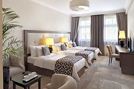 Located right by Kraków’s historical Jewish Quarter of Kazimierz, Metropolitan Boutique Hotel is less than 0.6 mi from the Old Town and the Wawel Royal Castle. This 4-star hotel offers a 24-hour front desk, a fitness center, and air-conditioned rooms with free WiFi. The rooms feature modern design and are decorated in subdued colors. Each comes with a flat-screen TV with cable channels, and a private bathroom with seasonal underfloor heating. Guests can relax in the lobby bar and enjoy a meal in the on-site restaurant offering Polish and European cuisine. In the mornings buffet breakfast is served. Metropolitan Boutique is located 0.9 mi from Kraków Główny Railway Station and from Galeria Krakowska Shopping Center. The hotel can provide shuttle services from the John Paul II International Airport Kraków-Balice, 7.8 mi away.