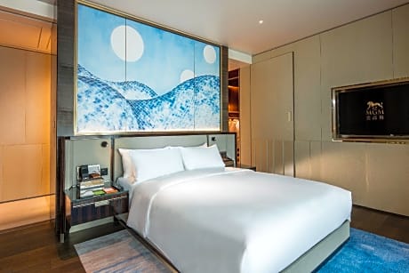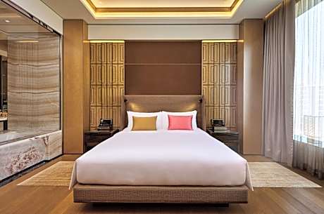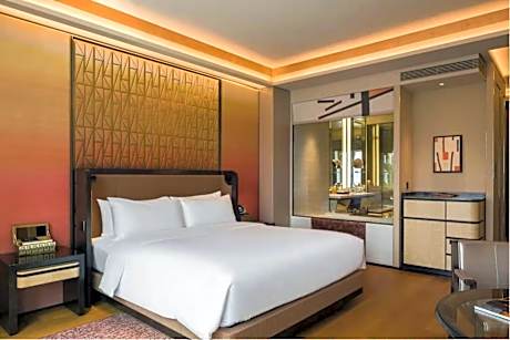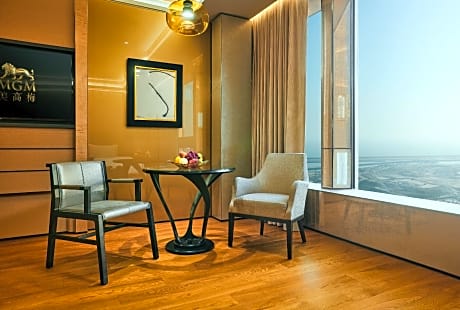 Soaring above the city, our breathtaking Skylofts sit atop MGM COTAI's Hotel Tower. The MGM COTAI Skylofts combine dramatic design, spectacular views and unparalleled service together. With panoramic views of Cotai and the scenic fountains, this spacious room features a 55-inch flat-screen TV, branded coffee machine and free mini-bar. Offering signature amenities, marble bathroom comes with a walk-in rain shower, separate bathtub and double vanities. This room also includes free access to swimming pool and fitness center. You will also have exclusive access to the Sky Lounge, with dedicated check-in and concierge facilities.Nonsmoking room is available upon request.