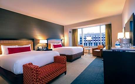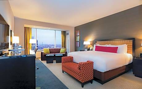 Featuring an on-site casino, luxury spa and indoor infinity-edge pool, this MGM Grand offers on-site dining and live entertainment in Detroit, Michigan. Every room at MGM Grand Detroit provides a 50-inch flat-screen HDTV with premium cable channels and complimentary bottled water. Private bathrooms offer spa-inspired showers with rainfall shower heads. Guests can escape to the on-site spa, which offers an array of amenities and facilities for the ultimate retreat, including an expansive indoor pool with cabana sofa seating, hot tub, steam room and sauna. A modern fitness center, business center and on-site shops are all available at the hotel. D.PRIME Steakhouse offers a robust dinner menu of steaks, meats and seafood selections. For a more comfortable, laid back meal, guests can grab a burger at TAP. In-room dining services are also offered for guest convenience.