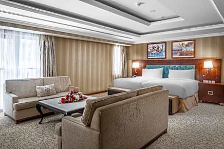 Al Aqeeq Madinah Hotel provides flawless service and all the necessary facilities for visitors.Maintain seamless communication using the complimentary Wi-Fi at hotel. Car hire offerings at the hotel enhance the ease of discovering Medina.Guests can avail parking facilities at the hotel.During your stay at this fantastic hotel, the attentive front desk personnel can provide you with a range of amenities such as concierge service, express check-in or check-out, luggage storage and safety deposit boxes. At the hotel, utilize the on-site dry cleaning service and laundry service to maintain your beloved travel attire fresh, allowing you to bring fewer clothes.Craving relaxation? Make the most of your stay at the Al Aqeeq Madinah Hotel with convenient amenities like 24-hour room service and daily housekeeping at your disposal. For all your minor, last-minute requirements, the convenience stores can promptly cater to them, eliminating the need to venture out.Kindly note that smoking is prohibited in the hotel to ensure fresher air for all visitors. At Al Aqeeq Madinah Hotel, every guestroom is provided with convenient amenities and fittings to ensure a comfortable stay. A few accommodations within Al Aqeeq Madinah Hotel offer unique design elements such as a separate living room. Certain rooms offer in-room amusement features such as the television for your enjoyment. In select rooms at the hotel, a coffee or tea maker is available for those moments when it seems necessary. In the hotel, certain guest bathrooms come equipped with essential bathroom amenities, such as a hair dryer, bathrobes and towels, ensuring a comfortable stay for guests. Be sure to stop by the elegant executive lounge where you can experience the lavish amenities and ambiance. Begin your day with a scrumptious on-site breakfast available each morning at Al Aqeeq Madinah Hotel.Begin your day feeling refreshed and invigorated as you enjoy a delightful cup of quality coffee available at the cafe situated within the hotel. At the hotel, an assortment of easily accessible and delicious meal choices are available to satisfy your appetite whenever it strikes.