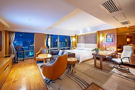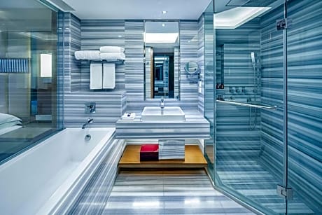 This double room's special feature is the hot tub. Providing free toiletries and bathrobes, this double room includes a private bathroom with a bath, a shower and a hairdryer. The spacious air-conditioned double room provides a TV with cable channels, soundproof walls, a mini-bar, executive lounge access as well as city views. The unit offers 1 bed.