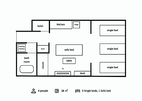 Boasting a private entrance, this air-conditioned suite includes 1 living room, 1 separate bedroom and 1 bathroom with a walk-in shower and a bath. In the fully equipped kitchen, guests will find a stovetop, a refrigerator, kitchenware and a microwave. The suite offers a washing machine, a wardrobe, an electric kettle, a sofa, as well as a flat-screen TV. The unit has 2 beds.