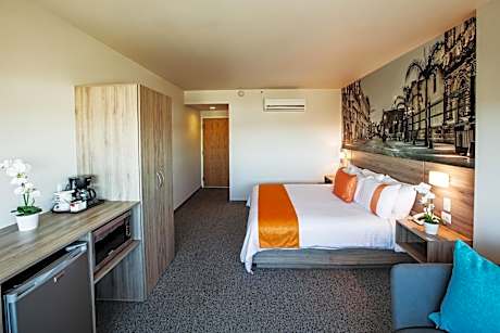 Mision Express Durango is offering accommodations in Durango. Featuring a shared lounge, the 4-star hotel has air-conditioned rooms with free WiFi. The property is non-smoking throughout and is located 4.3 miles from Durango Cathedral. At the hotel, every room comes with a desk. All rooms include a safety deposit box, while some rooms also offer a patio and others also have city views. Guests at Mision Express Durango can enjoy a buffet or an American breakfast. Free private parking and a business center are available, as well as a 24-hour front desk. Pancho Villa Museum is 4.4 miles from the accommodation. General Guadalupe Victoria International Airport is 7.5 miles from the property.
