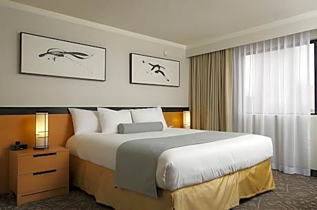 Little Tokyo and Grand Central Market are within 14 minutes' walk away from Miyako Hotel Los Angeles. It features multiple on-site dining options and classic rooms with free WiFi. A cable TV is provided in each guest room at the Miyako Hotel Los Angeles. All of the tan colored rooms include a refrigerator, an iron with ironing facilities, and coffee facilities. Tamon Sushi restaurant at the Los Angeles Miyako serves Asian cuisine, while the adjacent Ohjah Lounge offers a full bar and snacks. Guests can visit Cafe Take 5 for a cup of coffee or tea. A light rail transport station is 2 blocks from the hotel. The Walt Disney Concert Hall is 0.6 mi away, and Grand park is 0.7 mi away. The Japanese American National Museum is 2 minutes' walk away.