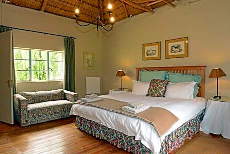 Tucked away in a private garden, you can sit on your veranda and gaze up the Sani Pass. Three bedrooms accommodate a total of six people - the main has a king size bed, the others have two single beds each, and there are two bathrooms, a lounge with a log fireplace, a separate dining room and old fashioned farm kitchen.