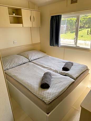 Featuring a private entrance, this air-conditioned mobile home consists of 1 living room, 2 separate bedrooms and 1 bathroom with a shower. Guests will find a stovetop, a refrigerator, kitchenware and an oven in the fully equipped kitchenette. The mobile home also provides guests with a barbecue. Boasting a terrace with lake views, this mobile home also provides a tea and coffee maker and a flat-screen TV. The unit offers 4 beds.