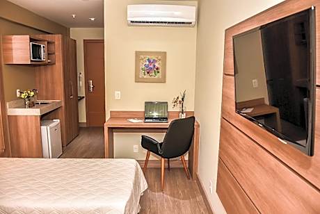 Featuring free toiletries, this double room includes a private bathroom with a shower and a hairdryer. The double room's kitchenette, which has a microwave, is available for cooking and storing food. The air-conditioned double room features a flat-screen TV with cable channels, a mini-bar, a wardrobe, parquet floors as well as city views. The unit has 1 bed.
