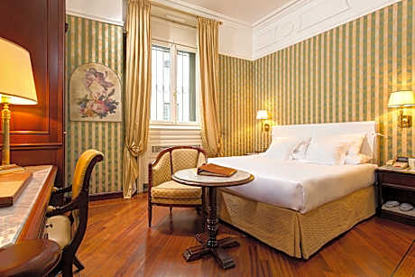 Enjoy an exclusive stay at Palazzo Montebello, an 18th-century residence fully renovated where elegance harmoniously blends with contemporary design. Nestled in a charming garden, Palazzo Montebello offers a peaceful retreat from the hustle and bustle of the city center while remaining close to all the main attractions of the stunning city of Florence. With the famous Ponte Vecchio, the renowned Uffizi Gallery, and the splendid Palazzo della Signoria just a 15-minute walk away, and the Basilica of Santa Maria Novella and the Medici Chapels only 10 minutes away, you can easily explore the cultural treasures of the city by strolling through the streets of one of the most beautiful cities in Italy. Additionally, the Teatro del Maggio Musicale Fiorentino is just a 12-minute walk away. Located in the immediate vicinity of Porta al Prato, Palazzo Montebello is easily accessible by any means: conveniently by train, with the Santa Maria Novella train station just a 10-minute walk away, or by car with peace of mind using the covered parking located outside the Limited Traffic Zone (ZTL). Palazzo Montebello, fully renovated, offers rooms with a contemporary and elegant design conceived to meet every need and comfort: elegant Boutique Rooms, spacious Deluxe Rooms, comfortable Premium Rooms, roomy Junior Suites, and an exclusive Suite. Each room is equipped with an HD TV, free WiFi, a coffee and tea set, a safe, and a mini-bar. For those seeking wellness, in addition to the relaxation offered by the internal garden, the hotel features a gym and a quiet sauna area, ideal for rejuvenating after a day spent exploring the city. During your stay, you can delight in a rich breakfast buffet with fresh orange juice, sweet and savory treats, and additional options upon request. The bar offers an all-day dining menu with the finest Tuscan wines and delicious snacks. Whether it's a leisure or business trip, a conference, or a concert, the service will be impeccable and the atmosphere unique and refined. What are you waiting for? Book now!