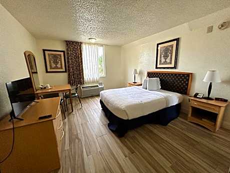 The Monumental Movieland Hotel is on International Drive and is 2.6 mi from Universal Studios Orlando. The I-Ride Trolley stops in front of the hotel. Free WiFi, a cable TV, and refrigerator with a microwave are standard in each simply appointed Monumental Movieland Hotel room. Extras include a private bathroom with towels and linen. ADA compliant accommodations are provided. A heated outdoor pool and 24-hour fitness facilities are on site. Plus, a full-service restaurant and an arcade are available. The hotel also features spacious banquet and convention facilities. Monumental Movieland Hotel is 7.5 mi form Walt Disney World and 5.2 mi from SeaWorld. Orlando International Premium Outlets are 2.9 mi away, while Orange County Convention Center is 3.1 mi from the property.