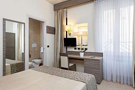Modern and air-conditioned room with free Wi-Fi. It features an LCD TV with cable channels.