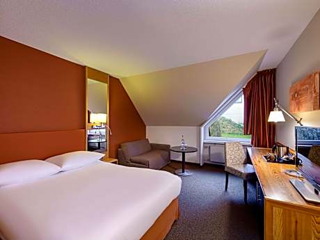 The Mövenpick Hotel Egerkingen enjoys an elevated position with panoramic views over west-central Switzerland. It has 3 restaurants and a bar. An internet terminal and free WiFi are featured at the property, and hypoallergenic rooms are available upon request. An extensive breakfast buffet is served every morning. Guests can enjoy international cuisine in the Mövenpick restaurant, Spaghetti at the restaurant Ciao, or finest beef specialties at the La Muetta barbecue restaurant, or spend pleasant evenings at the hotel bar and on the terrace with views of the Eiger, Mönch and Jungfrau Mountains. Basle, Berne, Lucerne and Zurich are about 40 minutes away. The Mövenpick Hotel Egerkingen enjoys a quiet location at the edge of the forest, yet only 2 minutes away from the Egerkingen motorway exit (motorways A1 and A2). Popular destinations for excursions in the vicinity include the Jura Mountains and the baroque town of Solothurn.