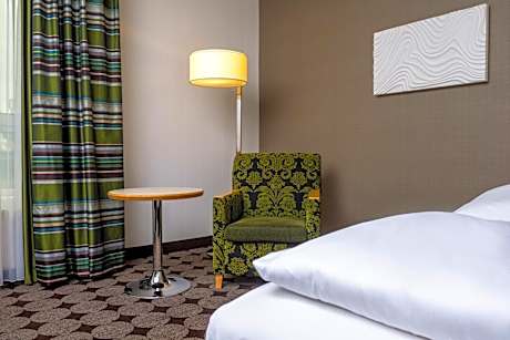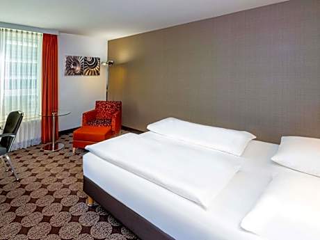 This modern, 4-star hotel offers soundproofed rooms, stylish spa facilities, and on-site parking. It is directly opposite Nuremberg Airport, just a 12-minute underground journey from Nuremberg city center and 20 minutes from the Nuremberg Exhibition Ground. All of the soundproofed rooms at the Mövenpick Hotel Nuremberg Airport feature WiFi internet, a flat-screen TV and air conditioning. The Mövenpick’s Wellness and Beauty Lounge includes a gym, sauna, steam room, and infrared cabin. Massages and beauty treatments can also be booked. A rich breakfast buffet is available here. Drinks and snacks are served in the Mövenpick bar with summer terrace. The Marché Mövenpick restaurant is located in the airport terminal and serves Franconian and international cuisine. The underground journey from the Mövenpick Nuremberg Airport hotel to Nuremberg Train Station takes 12 minutes. The motorway is a 5-minute drive from the hotel.