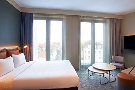 Featuring a shared lounge, a terrace and a bar, Moxy Brussels City Center is located in Brussels and is a 11-minute walk from Egmont Palace. Featuring a fitness center, the 4-star hotel has air-conditioned rooms with free WiFi, each with a private bathroom. Guests can have a drink at the snack bar. The rooms in the hotel are equipped with a flat-screen TV and free toiletries. A buffet breakfast is available at Moxy Brussels City Center. A business center and vending machines with snacks and drinks are available on site at the accommodation. With staff speaking English, Spanish, French and Italian, advice is available at the reception. Popular points of interest near Moxy Brussels City Center include Notre Dame du Sablon, Place Royale and Palais de Justice. Zaventem Airport is 9.3 miles from the property.