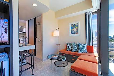 Located in Miami Beach, a 5-minute walk from Lummus Park Beach, Moxy Miami South Beach provides accommodations with free bikes, private parking, an outdoor swimming pool and a fitness center. With a terrace, the 4-star hotel has air-conditioned rooms with free WiFi, each with a private bathroom. Guests can enjoy Mexican dishes at the restaurant or have a drink at the bar. Guest rooms at the hotel are equipped with a flat-screen TV with cable channels and a safety deposit box. A continental breakfast is available at Moxy Miami South Beach. Speaking both English and Spanish, staff at the reception can help you plan your stay. Popular points of interest near the accommodation include Art Deco Historic District, Versace Mansion and Jewish Museum of Florida. Miami International Airport is 11 miles away.