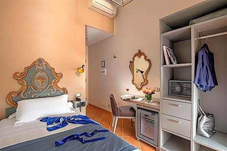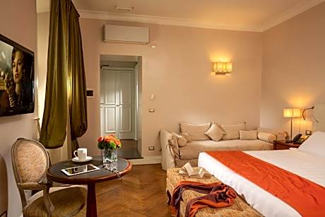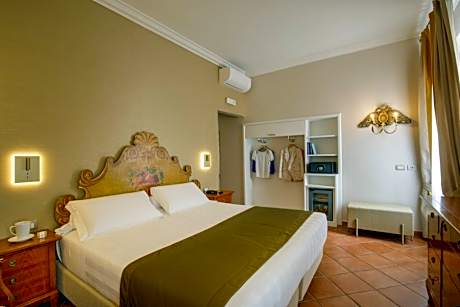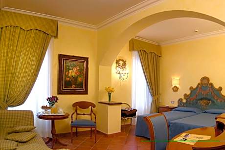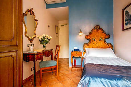 Each room is designed with traditional furnishings and includes an LCD TV with satellite and pay-per-view channels. Some rooms offer views of the main street, while others overlook the peaceful internal courtyard. In the morning, guests can indulge in a rich breakfast buffet featuring Italian coffee, fruit pies, freshly baked croissants, and homemade pastries. The hotel also provides a free internet point in the lobby for added convenience.