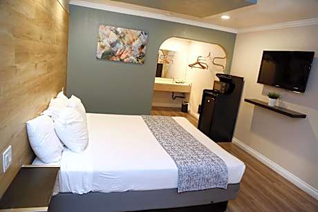 Less than 3 miles from Disneyland, this motel in Anaheim, California has comfortable guest rooms with mini-refrigerators, microwaves and satellite TV. The Anaheim Executive Inn & Suites features an outdoor pool and convenient laundry facilities. The area surrounding the Executive Inn Anaheim is filled with things to do and see. Within 5 miles of the motel, guests can reach Knott's Berry Farm theme park.
