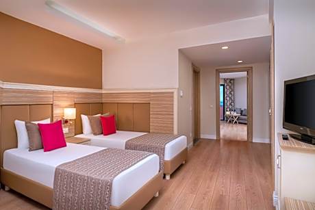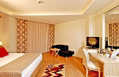Set amidst palm trees and a colorful garden, this 5-star beachfront resort offers rooms with free Wi-Fi and satellite TV. Facilities include outdoor pools with waterslides. All rooms of Delphin Deluxe Resort are equipped with air conditioning, a minibar, and a private balcony. Some rooms have panoramic views of the Mediterranean Sea. Guests can enjoy various forms of entertainment throughout the day, including water games, sports activities, and live shows and music. Resort Delphin Deluxe also has a shopping center on-site. The main restaurant serves an open buffet for breakfast, lunch and dinner. Another restaurant serves a wide variety of traditional Turkish dishes, as well as international dishes. Delphin Deluxe Resort offers a free shuttle bus service to Alanya, Side and Manavgat. Free private parking is available on site. License Number(s): 7639