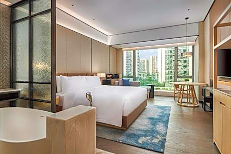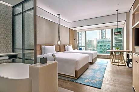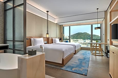 At DoubleTree by Hilton Shenzhen Airport, exceptional service and top-notch amenities create a memorable experience for guests. Complimentary internet access is available in the hotel to ensure you stay connected during your visit.Arrange your trips to and from the airport using the hotel's convenient transportation services booking.Amenities at shuttle offered by DoubleTree by Hilton Shenzhen Airport simplify the organization of your excursions, tourist activities, and other adventures in Shenzhen. For guests with their own vehicle, parking facilities are provided. Continuously receive the support you require through front desk amenities such as concierge service, luggage storage and safety deposit boxes. At the hotel, their tours can even assist you in booking tickets and securing reservations for leisure activities and adventures. At the hotel, utilize the convenient laundry service to maintain your preferred travel attire fresh, allowing you to pack lighter.Craving relaxation? In-room amenities such as room service and daily housekeeping allow you to maximize your time spent inside the room.Due to health concerns, smoking is strictly prohibited within the entire premises of hotel.Accommodations come equipped with all the conveniences required for a restful night's slumber. A few chosen rooms are equipped with television, in-room video streaming and cable TV to ensure guest amusement.In certain rooms, the hotel offers visitors access to instant tea and mini bar.DoubleTree by Hilton Shenzhen Airport offers a hair dryer, toiletries and bathrobes in the restrooms of specific accommodations. A delightful breakfast is the perfect way to begin your day, and at DoubleTree by Hilton Shenzhen Airport, you can always indulge in a scrumptious meal on-site. Allow your journey to be free from the pangs of hunger! On-site eateries offer delicious and accessible meal choices.An evening spent at hotel's bar can offer as much enjoyment as venturing out with your fellow travelers.At DoubleTree by Hilton Shenzhen Airport, experience the ease of having groceries brought straight to your accommodation through their efficient service.At DoubleTree by Hilton Shenzhen Airport, guests can take pleasure in the delightful recreational amenities provided for their entertainment.At DoubleTree by Hilton Shenzhen Airport, a wide array of amenities guarantees a fulfilling experience throughout your visit. Make your holiday truly memorable by taking a rejuvenating plunge into the pool.At the hotel fitness center, you have the option to engage in your daily exercise routine or simply alleviate your jet lag by breaking a sweat.