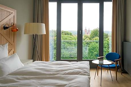 Located in Göttingen, FREIgeist Göttingen Innenstadt, A Member of Design Hotels – A Member of Design Hotels™ opened in July 2018 and features a fitness center and a bar. The property is located 0.7 mi from the University of Göttingen, 1969 feet from the Old Town Hall and 1969 feet from the Old Botanic Garden. The accommodations provides a 24-hour front desk and luggage storage space for guests. All rooms include a lounge chair, side table, a flat-screen TV, floor-to-ceiling windows, free WiFi, oak floors, natural cosmetics, a walk-in shower, a bluetooth sound bar and ashwood headboard. Some rooms are on the upper floors, offering great views of Göttingen. A buffet breakfast is served each morning at the property. FREIgeist Göttingen Innenstadt, A Member of Design Hotels offers a range of wellness facilities including a sauna with a view over Göttingen, as well as an infrared sauna. The German Theater Göttingen is an 11-minute walk from the accommodations. Kassel Calden Airport is 25 mi away.