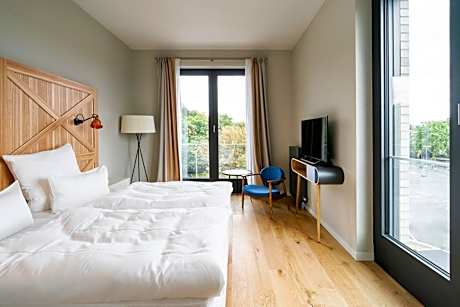 This room includes a lounge chair, side table, floor-to-ceiling windows, free WiFi, oak floors, natural cosmetics, a walk-in shower, a wireless 360-degree Bluetooth speaker from KREAFUNK and ashwood headboard.