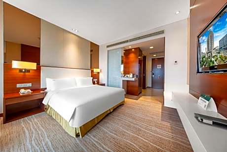Holiday Inn Chengdu Xindu By IHG offers top-notch services and amenities, ensuring guests experience utmost comfort.Share your photos and respond to emails at your convenience, thanks to the free Wi-Fi internet access offered by hotel. Should you require transportation to or from the airport, hotel is able to organize it prior to your arrival date. Taxi, car hire and shuttle offerings at the hotel simplify arranging your excursions, explorations, and additional activities in Chengdu. Visitors can take advantage of complimentary parking directly at the hotel.Reception services such as concierge service, express check-in or check-out, luggage storage and safety deposit boxes are available to accommodate your requirements. Securing top-notch tickets and snagging sought-after dining reservations become effortless, thanks to the hotel's ticket service and tours.Traveling with minimal baggage is achievable at Holiday Inn Chengdu Xindu By IHG, as the hotel's laundromat, dry cleaning service and laundry service ensures your garments stay fresh. Room amenities like 24-hour room service, room service and daily housekeeping contribute to making a perfect selection for your stay.Minor items you neglected to bring won't cause major issues! Simply visit convenience stores to acquire what's necessary. The hotel maintains a completely smoke-free zone, providing a breathable atmosphere. Smoking is limited to specified smoking zones.Each accommodation at Holiday Inn Chengdu Xindu By IHG is thoughtfully created and adorned to provide visitors with a comfortable, home-like atmosphere.In certain rooms, the hotel offers linen service, blackout curtains and air conditioning for guest convenience and satisfaction. In select rooms, guests at the hotel can enjoy top-notch in-room entertainment with daily newspaper, television and cable TV available for their convenience. Rest assured, in a few chosen rooms, you will find the convenience of a refrigerator, a coffee or tea maker and mini bar at your disposal. Maintain your cleanliness and comfort using a hair dryer, toiletries and bathrobes available in select guest restrooms. Immerse yourself in the executive lounge, where exceptional amenities and lavish surroundings await you. Embark on your holiday experience in the most ideal manner. Commence each morning of your visit with an on-site breakfast.Experience the delight of a fresh morning by savoring excellent coffee at the cafe situated within hotel. Should you prefer not to venture out for a meal, the enticing culinary choices at hotel are always available for your satisfaction. Experience an unforgettable evening with your fellow travelers just a short distance away, at hotel's bar. Should you be particularly discerning in your dining choices, you will surely appreciate having access to the on-site BBQ facilities provided at this location. Indulge in the numerous pursuits available at Holiday Inn Chengdu Xindu By IHG. Unwind after a long day by stopping by massage, steam room, spa and sauna to rejuvenate your senses.Each day at hotel, immerse yourself in the invigorating waters of the pool, perfect for a rejuvenating plunge or a series of revitalizing laps. For individuals who don't want to skip their exercise routine, visiting the hotel fitness center ensures you maintain your vitality and wellness.