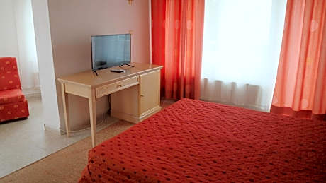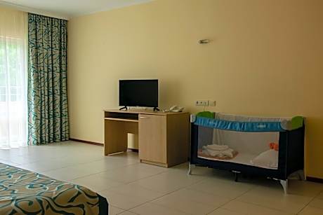 Located in the Southern part of the Golden Sands National Park, 3.1 mi from the resort's center, the Park hotel Bellevue is surrounded by a virgin forest. It offers panoramic views of the Black Sea Coast. Kabakum Beach is set a 15-minute walk way. An outdoor pool and a fitness center are available on site. Free private parking is possible on spot. The entire Hotel Bellevue is air-conditioned. Each room has a balcony, most of them opening to sea views. A TV with cable channels, a mini-bar and a desk are provided in each of the rooms. Some units come with a seating area with a sofa. Fine Bulgarian and international cuisine is served in the restaurant and on the terrace. Guests can enjoy refreshing drinks at the on-site bar. The Sportpalas sports complex is 2625 feet away. Varna Airport is located 14 mi away from the Park hotel Bellevue. The Dolphinarium can be found in 8.7 mi. The center of Varna is located 9.3 mi away, offering a wide number of restaurants, bars, cafeterias and grocery shops. License Number(s): В1-1ЦЕ-140-В1
