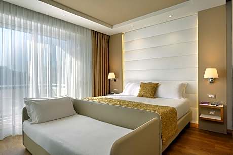 The spacious family room offers air conditioning, a mini-bar, a balcony with an inner courtyard view as well as a private bathroom boasting a shower.