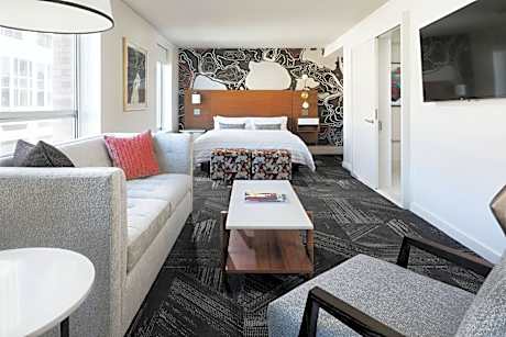 On the corner of 9th and Hennepin in the heart of Minneapolis’s historic theater district, The Chambers Hotel takes center stage. Built in 1908, The Chambers has had a front-row seat to the legendary Orpheum Theater’s groundbreaking performances, from the Marx Brothers’ vaudeville act to Prince’s hometown debut. Here at The Chambers, we, too, have a famous flair for the dramatic. Our 60 art-infused guestrooms and suites have walk-in rain showers (some of the suites also come with deep soaking tubs) and sweeping views of vibrant downtown. A lush courtyard with a fire pit are prime spots to admire the scenery on Hennepin Avenue. And 12,500 square feet of event space — including a pristine, blank-canvas gallery — await your creative touches. The skyway just steps from our door leads to the Target Center, Target Field, U.S. Bank Stadium, the Mississippi River and the colorful culture of the Twin Cities.