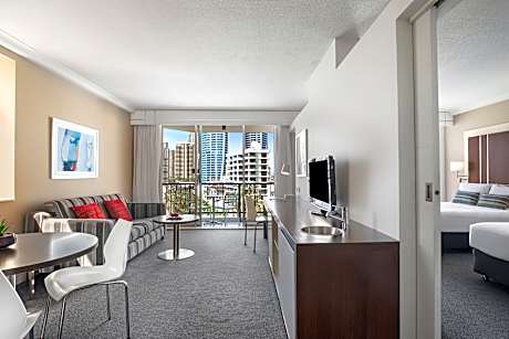 Experience fun, vibrant, and relaxed accommodations at Mantra on View, right in the heart of Surfers Paradise on the Gold Coast. Choose from a variety of rooms and suites, each with a private balcony perfect for soaking in the stunning skyline, hinterland, or ocean views. Step outside, and you’re just moments from the shopping, dining, and entertainment of iconic Cavill Avenue. Planning a conference or special event? Our versatile event spaces make it easy to host gatherings of any size with style and convenience. During your stay, indulge in the flavors of Nosh Pan Asian Restaurant, serving a full buffet breakfast daily. For moments of pure relaxation, visit Ocean Day Spa on Level 4, where blissful treatments await. At Mantra on View, your stay is yours to shape—whether you want a vibrant adventure or a calm retreat, we’ve got you covered. For your awareness: Cali Beach, a popular nearby beach club, comes alive on weekends and public holidays until late. If you’re sensitive to evening activity, you might notice some sounds, but it’s all part of the vibrant Surfers Paradise atmosphere