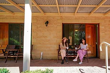 Grande Escape Resort offers spacious guest rooms in a quiet garden setting. This 4-star hotel is an ideal base for exploring the Margaret River region. The hotel offers a range of guest rooms including family suites, all of which are air conditioned and have private bathrooms. All of the guest rooms have a spacious veranda, many of which overlook the gardens. Leisure facilities at the hotel include an outdoor swimming pool, mini golf and children’s playground. There is also a barbecue area and barbecue packs are available from the hotel on request. The restaurant at Grande Escape Resort is open daily for breakfast. Dinner is available Monday to Saturday and the seasonal food can be enjoyed on the outdoor deck overlooking the lake. Please note that there is a 1.2% charge when you pay with a (Visa, Mastercard, American Express etc) credit card. Rooms are not serviced during your stay. Fresh towels and amenities may be collected from reception when open.