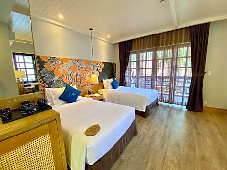 At L'Azure Resort and Spa, exceptional service and top-notch amenities create a memorable experience for guests. Complimentary internet access is available in the resort to ensure you stay connected during your visit.Arrange your trips to and from the airport using the resort's convenient transportation services booking.Amenities at taxi offered by L'Azure Resort and Spa simplify the organization of your excursions, tourist activities, and other adventures in Phu Quoc Island. Complimentary parking is available for guests.Continuously receive the support you require through front desk amenities such as luggage storage and safety deposit boxes.At the resort, their ticket service and tours is also capable of assisting with booking tickets and securing reservations for entertainment and adventures. Craving relaxation? In-room amenities such as room service and daily housekeeping allow you to maximize your time spent inside the room. Due to health concerns, smoking is strictly prohibited within the entire premises of resort. For the health and well-being of all guests and staff, smoking is restricted exclusively to assigned zones.Accommodations come equipped with all the conveniences required for a restful night's slumber. A selection of rooms feature blackout curtains and air conditioning to ensure your comfort and convenience.A few accommodations in L'Azure Resort and Spa incorporate separate living room and balcony or terrace into their architectural arrangement.A few chosen rooms are equipped with television and cable TV to ensure guest amusement.In certain rooms, the resort offers visitors access to a coffee or tea maker, bottled water, instant coffee, instant tea and mini bar.In the resort, certain guest bathrooms come equipped with essential bathroom amenities, such as a hair dryer, toiletries and bathrobes, ensuring a comfortable stay for guests. A delightful breakfast is the perfect way to begin your day, and at L'Azure Resort and Spa, you can always indulge in a scrumptious meal on-site. Allow your journey to be free from the pangs of hunger! On-site eateries offer delicious and accessible meal choices. An evening spent at resort's bar can offer as much enjoyment as venturing out with your fellow travelers. At L'Azure Resort and Spa, guests can take pleasure in the delightful recreational amenities provided for their entertainment. At the resort, a wide range of enjoyable activities ensures that there's never a dull moment during your visit. Don't miss out on the easily reachable beach in the vicinity.Conclude your days in complete tranquility by paying a visit to massage and spa for ultimate relaxation.At L'Azure Resort and Spa, the poolside bar provides an excellent incentive to enjoy extended hours in your swimwear. At the resort fitness center, you have the option to engage in your daily exercise routine or simply alleviate your jet lag by breaking a sweat. License Number(s): 0301123125-006