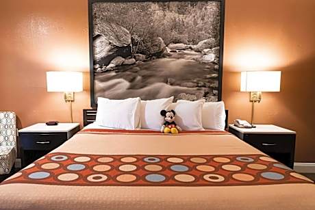 Located about 15 minutes' walking distance to Downtown Disneyland, this hotel in Anaheim, California offers comfortable guestrooms and relaxing facilities. Guests can enjoy a free light breakfast to-go, then go for a swim in the outdoor pool. Super 8 by Wyndham Anaheim/Disneyland Drive features guestrooms with convenient amenities such as microwaves, refrigerators and free wireless internet access. Disneyland tickets are available at Super 8 by Wyndham Anaheim/Disneyland Drive's reception. Guests can also visit nearby attractions such as Universal Studios, Knott's Berry Farm theme park and Hollywood. The nearest airport is John Wayne Airport, which is 16 mi away.