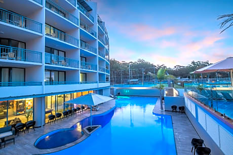 Landmark Resort features modern, self-contained apartments with spectacular views of Port Stephens. Located next to Nelson Bay’s 27-hole Golf Course and Tomaree National Park, it offers an outdoor gas-heated pool and a Japanese steam room. All apartments have a kitchenette with a dishwasher, a microwave and a fridge. Each also comes with a balcony and a lounge area. Amenities include a DVD player and a flat-screen TV. The property is nonsmoking. Guests can book dolphin and whale watching cruises at the tour desk. Free on-site parking is provided. Guests can enjoy the use of an off site tennis court for an additional fee. The Nelson Way, cafe, restaurant & bar is located onsite. Open 7 days a week for breakfast, lunch and dinner. Reservations are recommended due to the popularity of this restaurant, Please call 02 4039 9948 to book your table. Landmark Resort is a 7-minute walk from Nelson Bay Marina and 2.8 mi from Salamander Shopping Center. Newcastle Airport is a 33-minute drive away. Self-contained apartments, no daily housekeeping provided. No pets allowed License Number(s): PID-STRA-84231