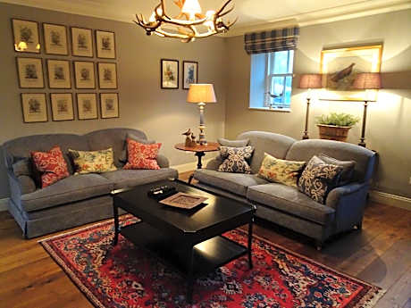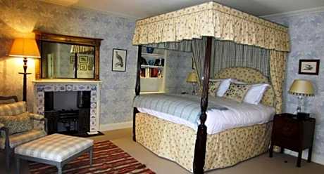 This more spacious room with a super king-size four-poster bed is set in the main house and features a coal effect gas fire and walk-in wardrobe. The private bathroom has a double bath, separate shower and a double sink.