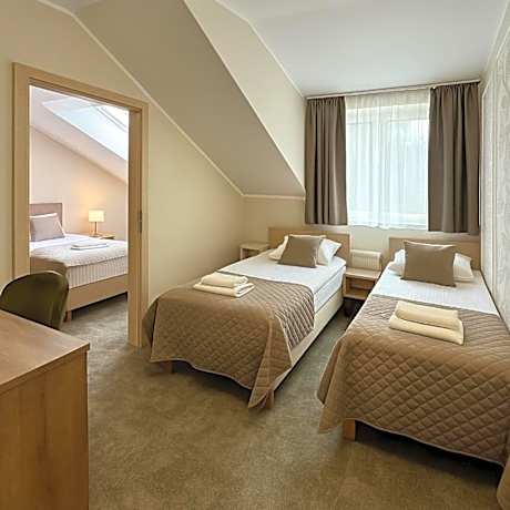 19 miles from Gdansk Lipce in Lubiszewo, Leśne Ustronie offers accommodations with access to wellness packages. This property offers a heated pool and free private parking. The bed and breakfast provides quiet street views, a sun terrace, a 24-hour front desk, and free Wifi is available throughout the property. At the bed and breakfast, all units are fitted with a desk, a flat-screen TV, a private bathroom, bed linen, and towels. Each unit is fitted with air conditioning, and certain units at the bed and breakfast have a balcony. The rooms are equipped with heating facilities. A selection of options including warm dishes, fresh pastries, and pancakes are served for the buffet breakfast. Guests can eat at the on-site family-friendly restaurant, which is open for dinner, lunch, cocktails, and high tea. For guests with children, the bed and breakfast features an indoor play area, outdoor play equipment, and a kids' club. Cycling and hiking can be enjoyed nearby, while a bicycle rental service and a private beach area are also available on-site. St. Nicholas Roman Catholic Church is 23 miles from Leśne Ustronie, while Green Gate is 23 miles away. Gdańsk Lech Wałęsa Airport is 25 miles from the property.