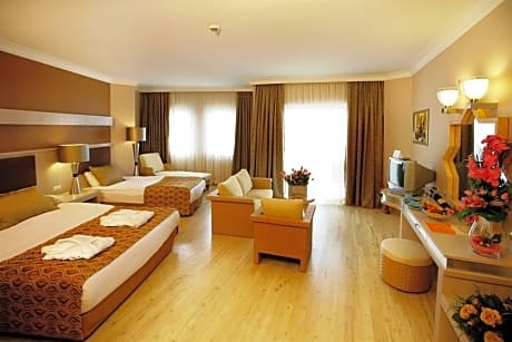 Located directly on the seafront of the Mediterranean region, Mukarnas Spa & Resort Hotel offers a private sandy beach, outdoor pools, water slides and spa facilities. The hotel features an architecture inspired by the Seljuks. The elegant rooms of Mukarnas include air conditioning, TV, mini-bar and free Wi-Fi. Each room offers a balcony. Breakfast, lunch and dinner are served as an open buffet at the main restaurant. You can also enjoy Chinese food, Italian cuisine and Turkish kebabs at the à la carte restaurants. For drinks and snacks, there are 5 bars and a café on site. During the day you can relax and sun bathe at the beach, enjoy beach volleyball or relax at the Turkish bath or sauna of the hotel. There is also a disco for nightly entertainment. Okurcalar town center is 1.9 mi from the hotel. Antalya Airport is within 59 mi.