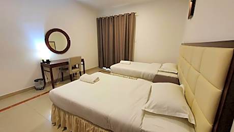 Muscat Oasis Residence is centrally located in Bowsher area of Commercial District, adjacent to contemporary Panorama mall and only 10 minutes from Muscat International Airport and diplomatic area. The hotel features 3 swimming pools including an indoor pool exclusively for ladies. In addition it offers a fitness center and a Turkish steam bath. The upscale residence is consisted of of two and three spacious bedroom furnished and non furnished apartments with balcony for long stayers. Each apartment features a spacious living room which opens onto a balcony ,fully equipped kitchen, satellite TV,WiFi, fully equipped health club and gardens making guests stay comfortable. Al Khuwair Commercial Area is a 5-minute drive and Seeb International Airport is 15 minutes away by car.