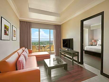 Mövenpick Hotel Mactan Island Cebu is located 0.7 mi from Lapu-Lapu Shrine and 10 mi from SM City Cebu, this 5-star resort features of 245 rooms and suites, an outdoor swimming pool, a fitness center, and a private beach area. Modern décor and hardwood flooring feature throughout the spacious rooms at Mövenpick Hotel. Each room has air conditioning, a flat-screen LED TV, and a fully stocked mini-bar. The rooms each feature a private balcony with different views, while the private bathroom is fitted with a separate shower and bathtub. Free Wi-Fi is also available in the rooms. The Sails is an all-day dining restaurant offering a wide range of Asian and International dishes for a la carte and daily breakfast buffet. The Forum, a tropical poolside bar, offers light snacks and alcoholic beverages. Guests can savor the vibrant Balearic dining at The Forum, with a 12-course lifestyle dining experience and unrivaled entertainment by the Ibiza Show Team every Friday and Saturday evening. The Lobby Lounge offers coffee and tea as well as pastries and the complimentary sweets served during Mövenpick's Chocolate Hour. Guests can pamper themselves at Spa Del Mar where the signature "Hilot" massage is offered and the fitness center is available for use at any time. The resort's private beach area provides a relaxing setting for that afternoon dip, while guests can also go on a snorkeling trip or try out the paddle boards. Little Birds Club provides daily fun activities for the kids. The property has a business center and a gift shop on-site, while the staff can assist guests with sightseeing arrangements. Luggage storage, laundry, and dry cleaning services are also available. Airport shuttle service and car rentals may be arranged for guests at an additional cost. Mövenpick Hotel Mactan Island Cebu is within 40-minute drive from Magellan's Cross while 50-minute drive from SM Seaside Cebu. The nearest airport is Mactan-Cebu International Airport, 20-minute drive from the resort. Couples particularly like the location — they rated it 8.0 for a two-person trip.