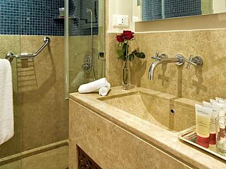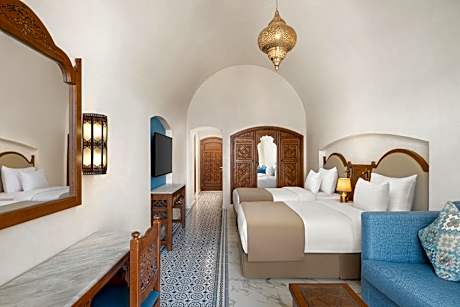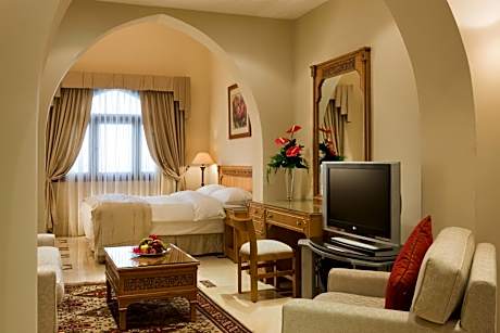 Welcoming guests since 1998 , The Arabesque style resort is directly overlooking the turquoise water of Naama Bay with a wide panoramic view over the whole bay. With authentic and simply decorated rooms , heated swimming pool , exceptional culinary experience , 5 beaches and a variety of water sports and activities , Mövenpick Resort Sharm El Sheikh Naama Bay is your perfect choice for a relaxing hassle free vacation. Oriental and Egyptian cuisine is offered at the El Kababgy Restaurant while La Brise serves Italian food. Indian food is served at the Rangoli. Liwa Restaurant serves international dishes from the terrace with Red Sea views. Sharm Mövenpick guests can enjoy a relaxing massage, or visit the fitness center which includes cardiovascular equipment. There is also a tennis court and a hot tub. Nearby leisure activities include diving, snorkeling and horse riding. Horse lovers find a riding paradise within the resort with breathtaking views over a desert and sea landscape with offers of various trips to the beach and to the desert for beginners and experienced riders. Mövenpick Sharm El-Sheikh is conveniently located a 10-minute drive from both Sharm El-Sheikh International Airport and the city center. Free private parking is available on site, airport shuttle is on request with extra fee.
