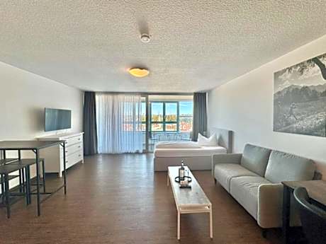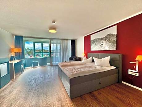 The MY Parkhotel by AR Hotels is located in Kempten town center in the Allgäu holiday region. It offers well-equipped rooms, a 13th-floor restaurant and a daily breakfast buffet. The rooms at the 4-star MY Parkhotel by AR Hotels include a small conservatory, cable TV and a mini-bar. Wi-Fi internet is also available. A large breakfast buffet is served each morning at the MY Parkhotel by AR Hotels. The 13th-floor restaurant offers excellent views and international cuisine.