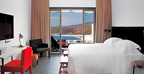 Offering 2 outdoor pools and a thalassotherapy wellness centre, Myconian Avaton, a Member of Design Hotels is located just a few steps away from the sandy Elia Beach. It offers luxurious, sea-view accommodation and fine dining, while free WiFi access is available throughout. Accommodation at Myconian Avaton is decorated in respect to the Cycladic style with modern details. All units are air conditioned and equipped with a flat-screen, satellite TV, iPod docking station and minibar. In the luxurious bathrooms you will find free toiletries, bathrobes and slippers. Start your day on the sea-view terrace of the restaurant and enjoy a rich breakfast including Greek yogurt, organic honey, and other Mykonian delicacies. Gourmet dishes based on traditional recipes are prepared for lunch and dinner by the chef. Within 10 km, you can reach the local airport, as well as the cosmopolitan centre of Mykonos Town. The 24-hour front desk will assist you with transfers, car rentals and concierge service. Free on-site parking is available.