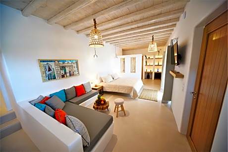 Located in Kalafatis, a 9-minute walk from Kalafatis Beach, Myconian Crown Suites provides accommodations with a seasonal outdoor swimming pool, free private parking, a garden and a terrace. The property is around 6.7 miles from Mykonos Windmills, 6.7 miles from Archaeological Museum of Mykonos and 6.7 miles from Little Venice. The hotel features a hot tub, room service and free WiFi throughout the property. The hotel will provide guests with air-conditioned rooms with a desk, a safety deposit box, a flat-screen TV, a balcony and a private bathroom with a shower. Myconian Crown Suites has certain rooms with sea views, and each room includes a patio. Guest rooms will provide guests with a fridge. Mykonos Old Port is 6.8 miles from the accommodation, while Mykonos New Port is 7.6 miles from the property. Mykonos Airport is 5 miles away, and the property offers a paid airport shuttle service.
