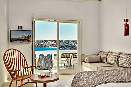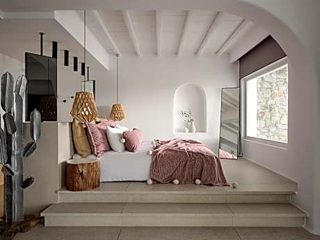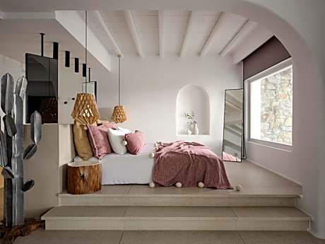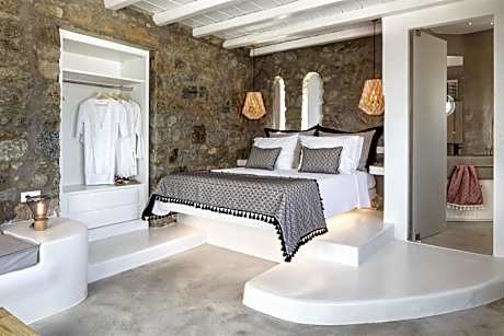 Located in Kanalia of Ornos, Mykonos No5 Luxury Suites & Villas offer an outdoor pool and a sun terrace. It features self-catering and tastefully decorated accommodations with Aegean Sea views. Free WiFi is provided in public areas. All air-conditioned suites and villas of Mykonos No5 come with a terrace and a mini-bar. Some suites feature a kitchenette, while all villas come with a fully equipped kitchen. Each has a seating area with flat-screen, satellite TV and a private bathroom with a hairdryer and bathrobes. Some units are split level or fitted with a private pool. Mykonos Airport is located 3.1 mi from the property. Free private parking is possible on site.